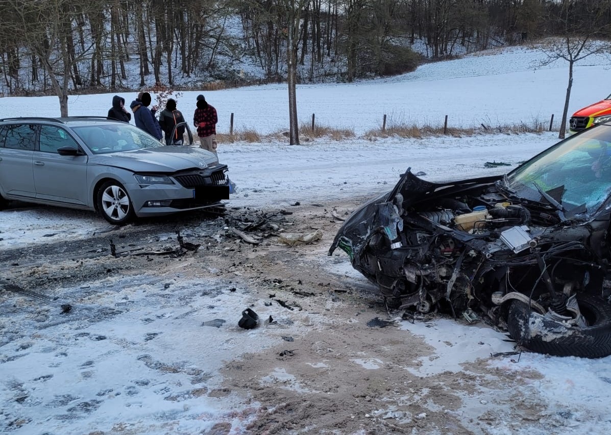 Frontalcrash auf schneeglatter Landstraße